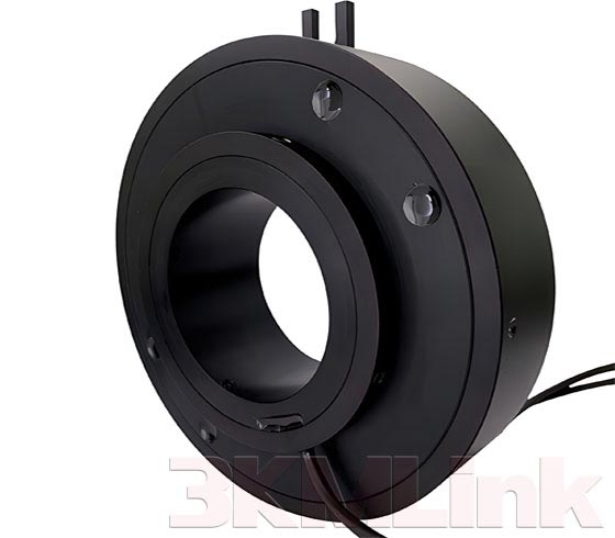3KM T-series slip ring is designed with a through hole for shaft mounting, the through hole sizes are from 12.7mm to 124.6mm. it could be applied to transmit power, signals, RF, gas and fluid when the devices require 360° rotating.